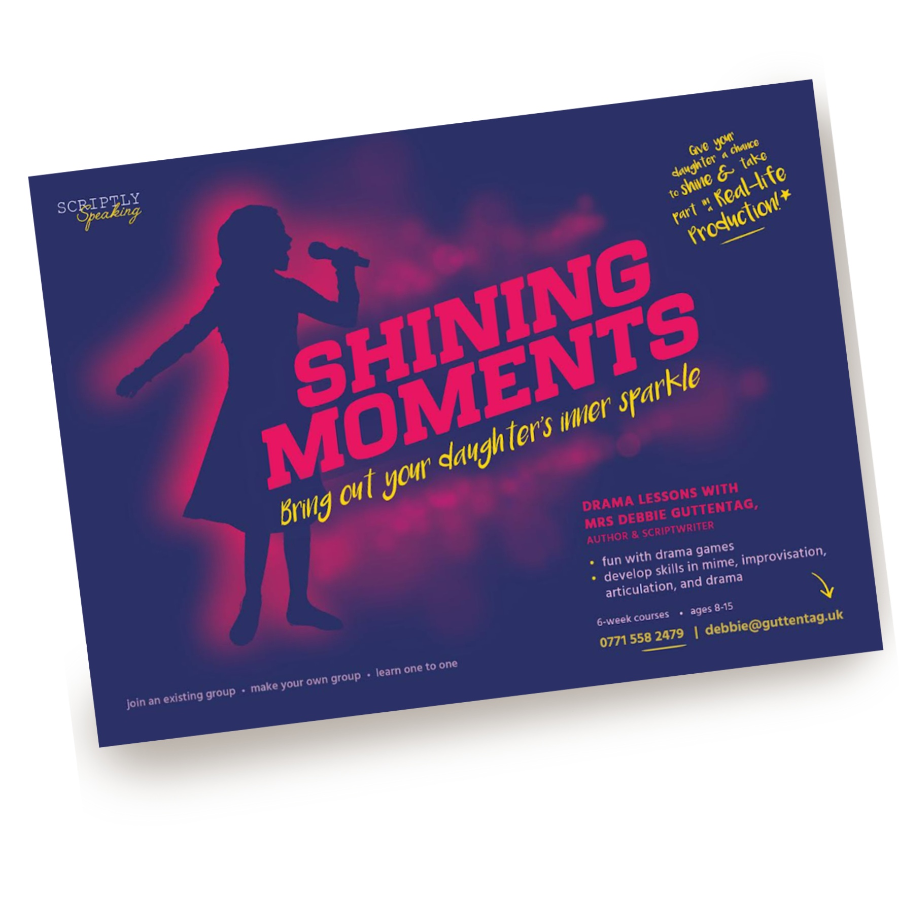 “B”H my classes filled up more than I’d imagined – I opened a fifth class instead of four, as planned. And I’m still getting compliments on the ads!”